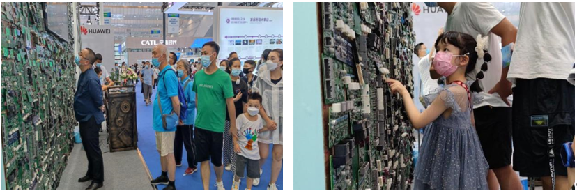 “格林美是真的下了大功夫的呀!”“這個企業(yè)布展完美契合‘資源有限、循環(huán)無限’的理念”“我好喜歡這個線路板墻啊!”……為期三天的展會,前來格林美展位的觀眾絡(luò)繹不絕,現(xiàn)場氛圍熱烈紅火,接待參觀人數(shù)超過3000人次,一句句來自觀展群眾們發(fā)自內(nèi)心的點(diǎn)贊,是對格林美的重要肯定。格林美以最用心的布置踐行低碳環(huán)保,用最細(xì)心的講解接待觀展群眾,將循環(huán)經(jīng)濟(jì)、綠色低碳發(fā)展的理念深入人心。