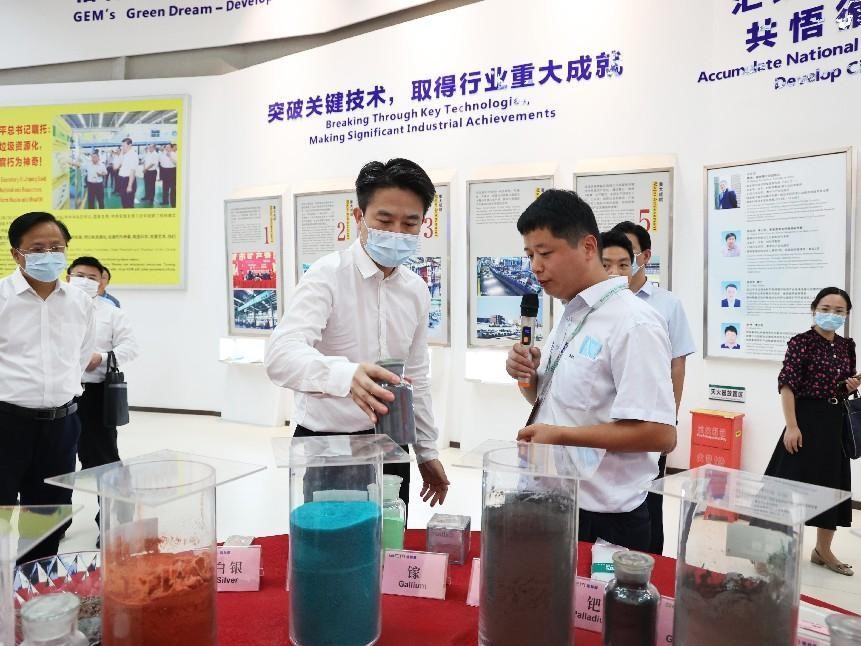 張坤副總經理帶領王濟民廳長一行參觀了格林美“城市礦山”博物館,詳細介紹了格林美20年來的全球綠色低碳產業布局和取得的輝煌成就。從百年電視機墻到報廢動力電池,從公司發展歷程到全球產業布局,從習近平總書記視察格林美經典畫面到“格林美·七夕紅”推動湖北鄉村振興,王濟民廳長饒有興致地一邊看、一邊聽、一邊問,頻頻點頭,不時拿出手機拍照留念。