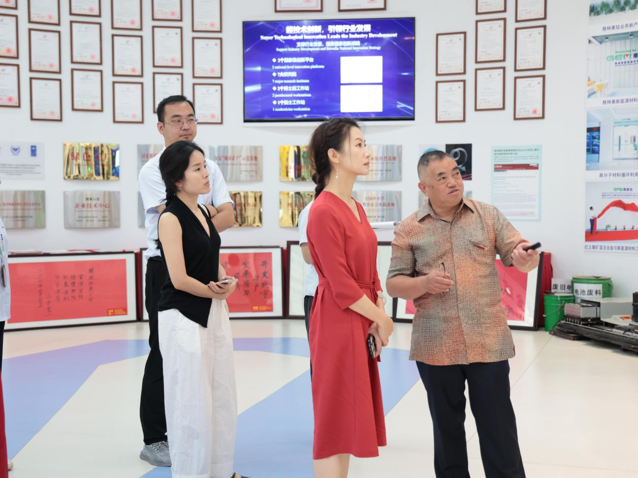 參觀過程中,楊雨教授通過與許開華董事長展開深入交流,從創業初心、發展歷程、遭遇困境、戰略轉型與人才培養等多方面深度挖掘格林美開采城市礦山背后的故事,梳理冶金技術推動循環產業的發展脈絡。
