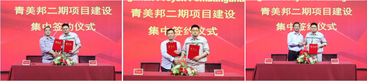簽約儀式上,集團副總經理、青美邦總經理彭亞光代表青美邦與二十二冶、中機建設、以及偉興建設等建設單位簽署了建設分包協議,規范各方在項目中的合作內容和責任范圍,確保項目高效有序進行。各建設單位代表上臺發言,紛紛表示將精誠團結、嚴抓細管,以高標準、嚴要求,全力以赴推進項目建設,確保印尼青美邦二期項目順利投產。