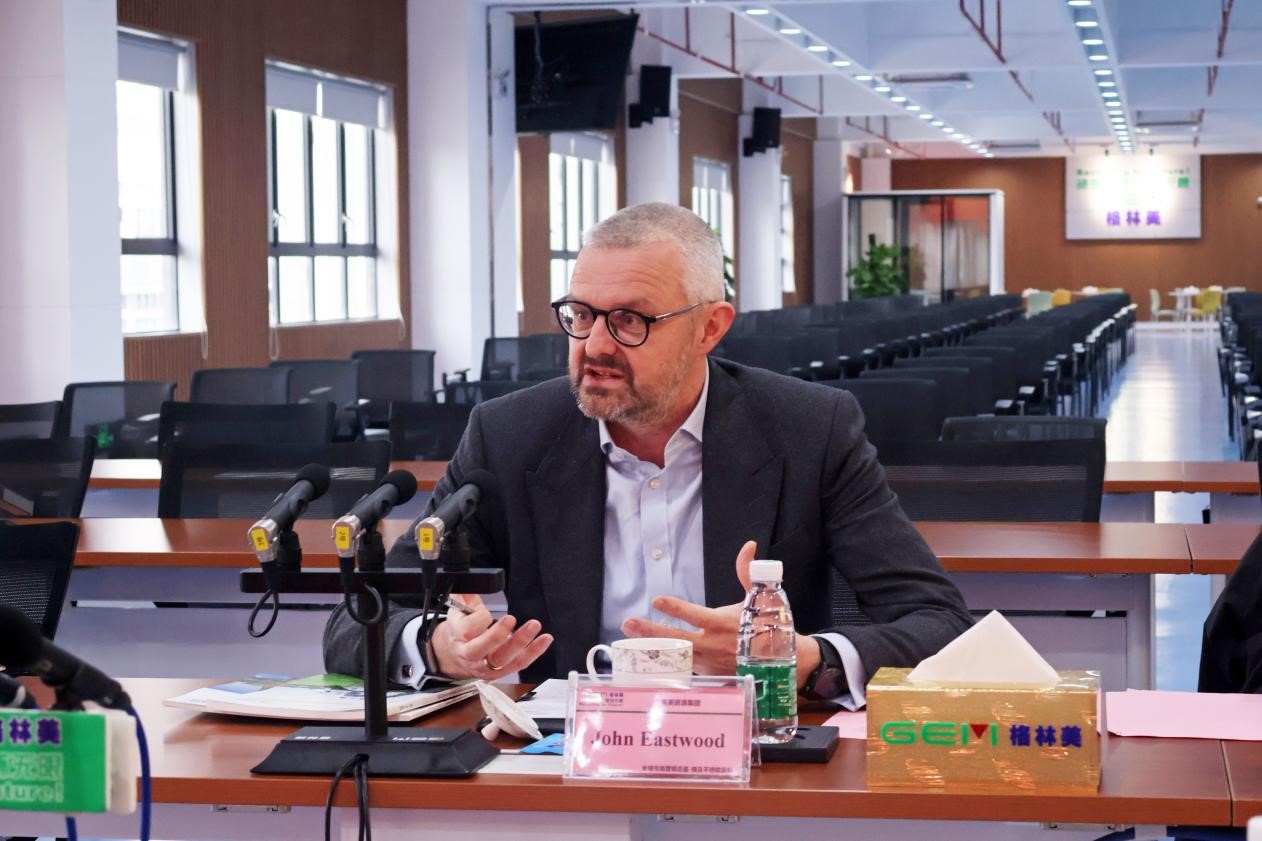 圖6 簽約儀式前,英美資源集團(tuán)全球市場(chǎng)營(yíng)銷總監(jiān)(鎳及不銹鋼原料)John Eastwood先生一行參觀格林美(深圳)超級(jí)綠色技術(shù)研究院