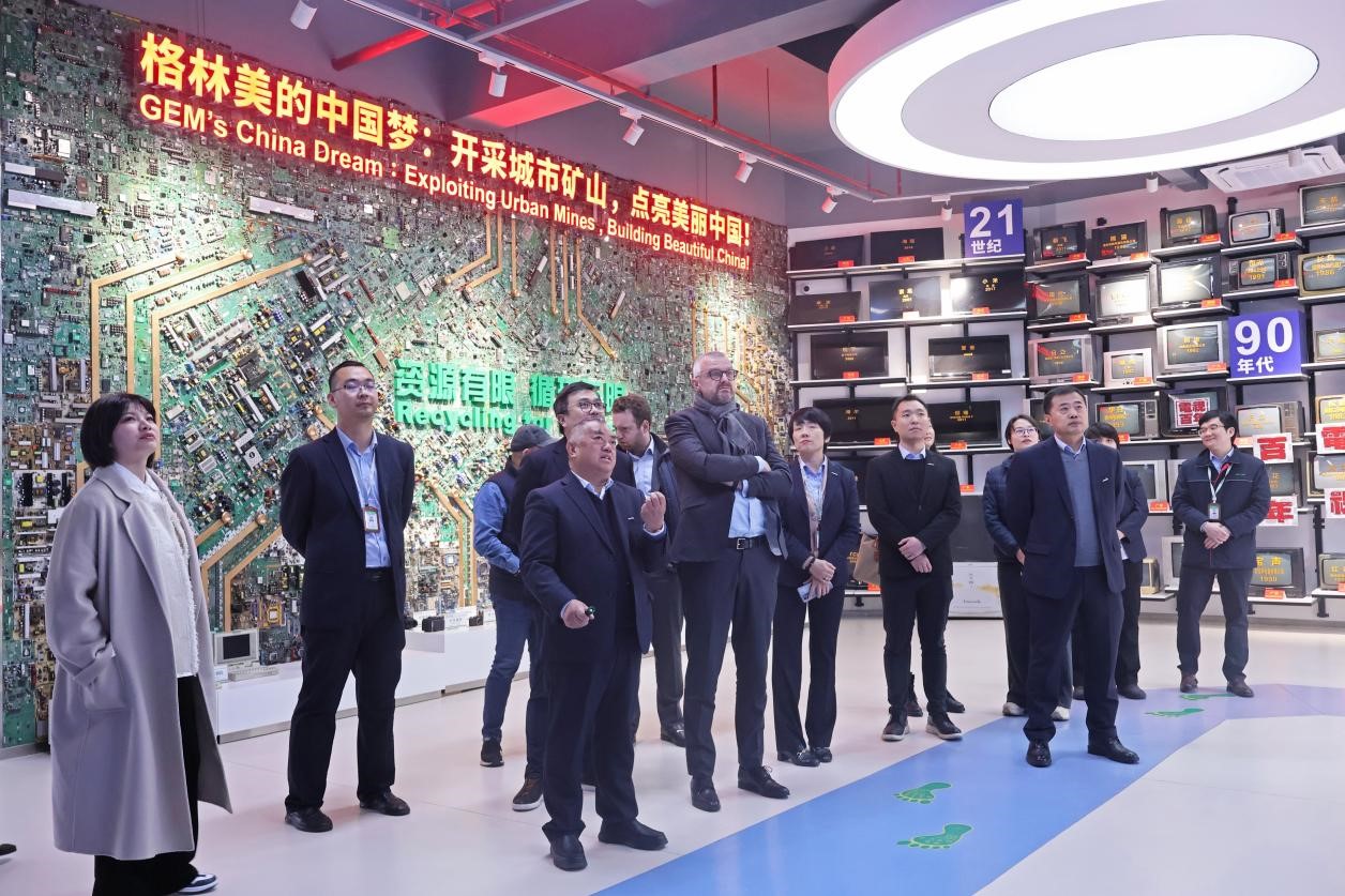 圖5 簽約儀式前,英美資源集團(tuán)全球市場(chǎng)營(yíng)銷總監(jiān)(鎳及不銹鋼原料)John Eastwood先生一行參觀格林美“城市礦山”博物館