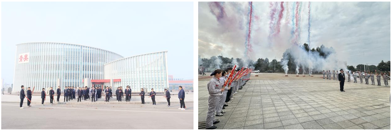 上午8時48分,各園區舉行開工儀式,鞭炮齊鳴、禮花沖天,恭賀開工大吉、龍行大運,在喜慶和歡騰的氣氛中,奮發向上的格林美人以嶄新的精神面貌迎接2024年,吹響新春“龍騰虎躍”的號角。