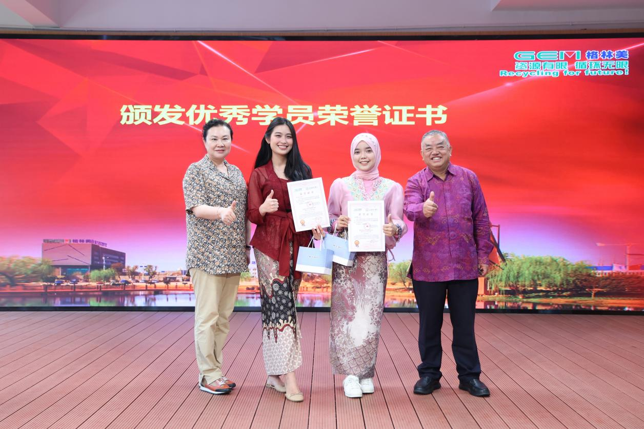 從最初的拼音學習,到復雜的漢字書寫,再到流利的對話練習,經過近三個月的“浸泡式”中文學習,28名中文零基礎的學員均成功通過結業考試,榮獲結業證書。其中,布媞(Santa Laetitia Nusa Putri)和安芮娜(Seli Anriana)憑借優異表現,榮獲優秀學員榮譽證書,并作為優秀學員代表上臺發言,對格林美提供的沉浸式學習機會表示衷心感謝。第二期中文培訓突擊營學員的如期優秀結業,再次展示了公司開辦的中文培訓突擊營的中文學習培養模式的巨大成功。