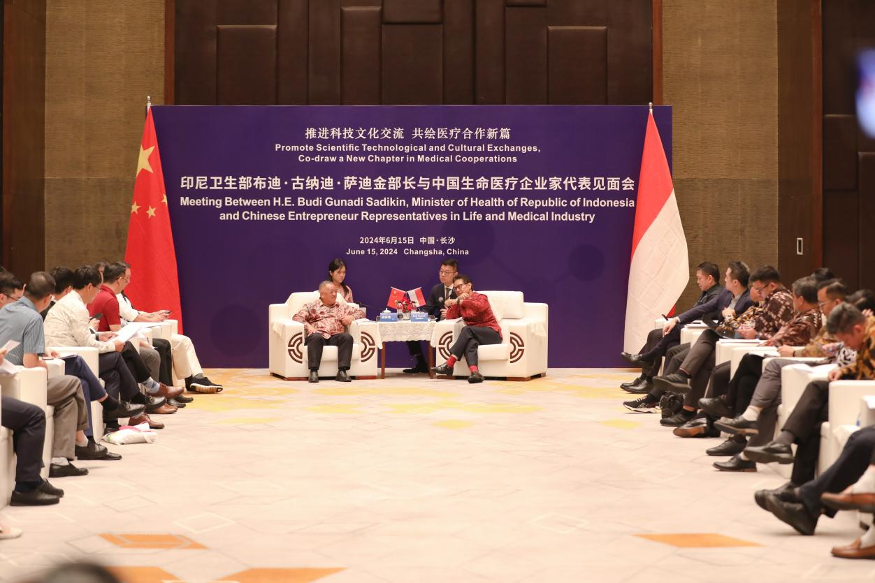 考察期間,格林美、中南大學校友總會、中南大學校友企業家聯誼會聯合組織舉辦了印尼衛生部與中國生命醫療領域企業家交流會。布迪部長與來自邁瑞醫療、華大基因、聯影醫療、三諾生物、翰宇藥業、圣湘生物、東軟醫療、可孚醫療、愛威科技、埃普特醫療、湖南省腫瘤醫院、中南科創(深圳)等20余家企業代表進行了會面交流。