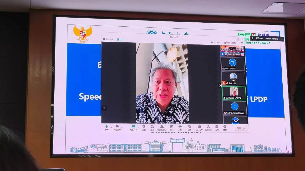 圖3 印尼經濟和工業基礎設施部Firdausi Manti副部長與印尼留學生遠程交流