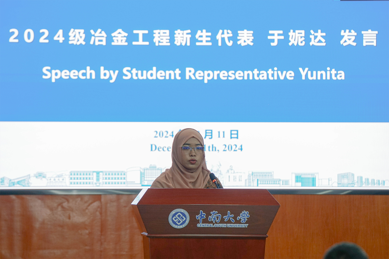 中南大學郭學益副校長、黎志宏副校長分別致辭,對第四期留學生表示熱烈歡迎。郭學益副校長表示,在人才培養方面,中南大學與印尼政府、格林美集團共同開展的“校-政-企”國際學生培養模式已經日趨成熟,希望未來三方攜手實施“百千萬”人才培養計劃(100名工程博士、1000名工程碩士、10000名工匠),將印尼國際碩士班打造成為“一帶一路”合作辦學的典范,推動中國與印尼在各領域的合作取得更大的發展。黎志宏副校長在致辭中承諾,中南大學將持續致力于向國際學生提供卓越的教育資源,打造一個充滿活力的學術環境,為學生的茁壯成長和持續發展奠定堅實的基礎。同時,中南大學也將不懈地追求探索與創新,以應對全球化所帶來的挑戰與機遇。