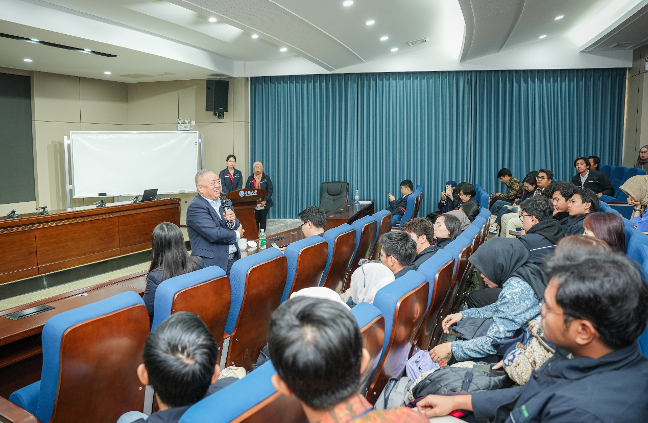 下午,許開華董事長為第四期印尼留學生講授“開學第一課”——“共同學習,邁向綠色未來(Study together and move towards a green future)”主題英文講座,并與新生展開親切互動。許開華董事長為第四期印尼留學生講授全球綠色發展大趨勢及印尼國家的機遇。他說,未來的世界將是綠色的,新能源時代正在快速發展,這也是印尼的巨大機遇。許開華董事長帶領同學們回顧印尼普拉博沃總統提出的未來8%GDP增速的發展目標——印尼有望于2045年成為全球第5大經濟體,印尼擁有東盟國家中最好的資源稟賦,格林美將通過“百千萬培訓計劃”為印尼GDP高速增長提供人才支持,冶金工程、軌道交通、國際貿易專業都能在印尼電動化、綠色發展中起到關鍵作用,有著廣闊的發展前景,鼓勵學生實施人生設計,樹立人生理想,學好本事為印尼國家做出貢獻,實現人生價值輝煌,做中印尼合作與友誼的推動者。