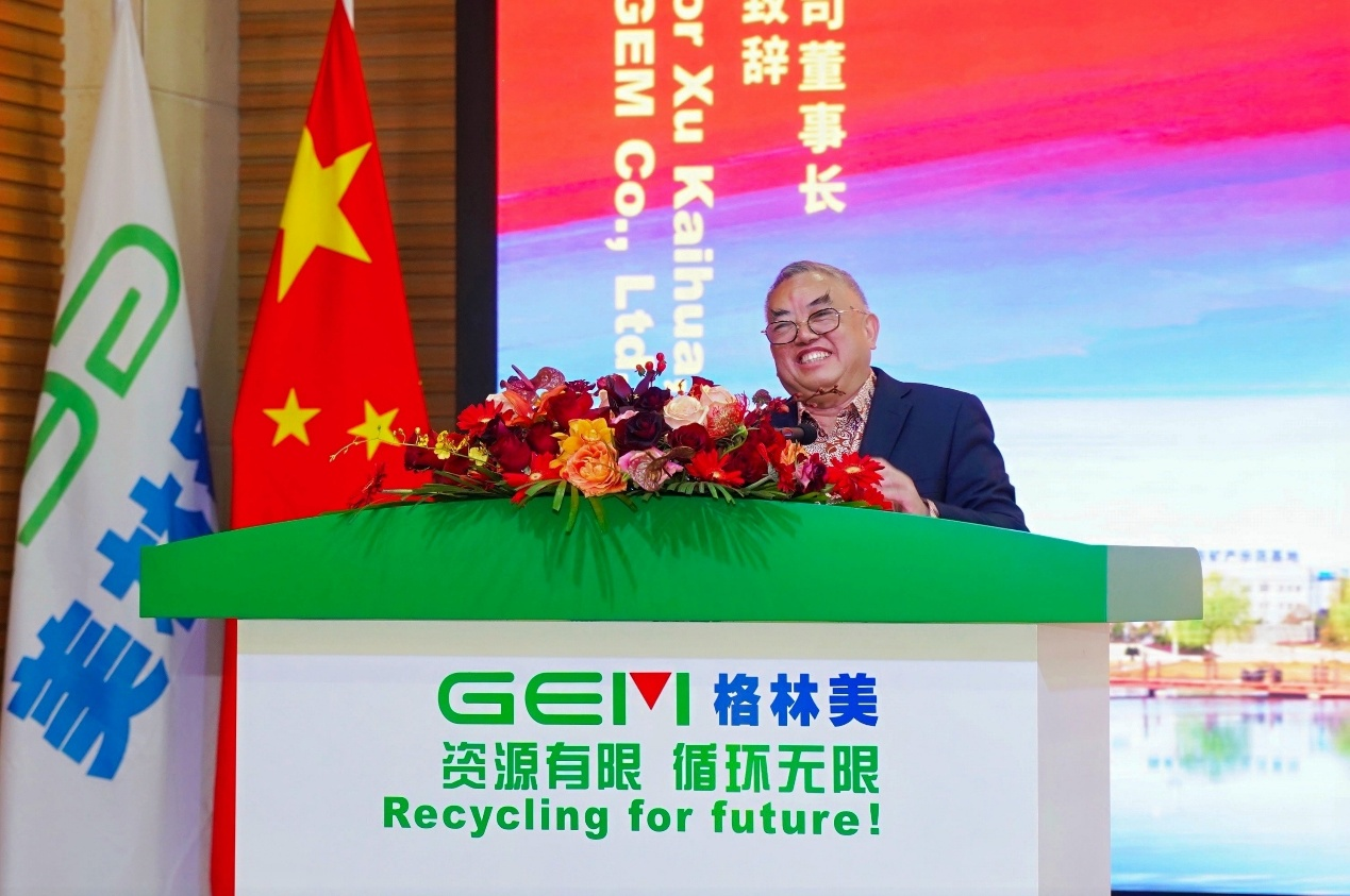 ▲ 格林美集團董事長許開華教授在簽約儀式上致辭