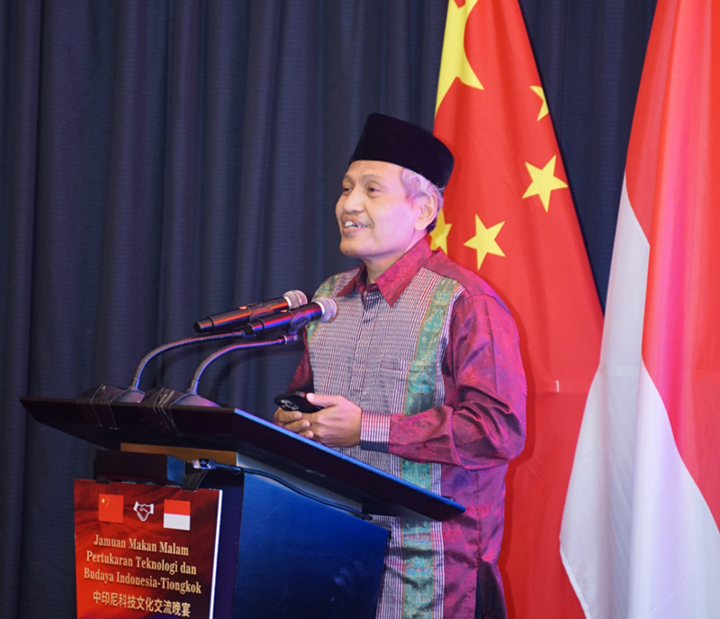 ▲印尼人類發(fā)展和文化統(tǒng)籌部部長(zhǎng)普拉蒂克諾(Pratikno)教授發(fā)表致辭