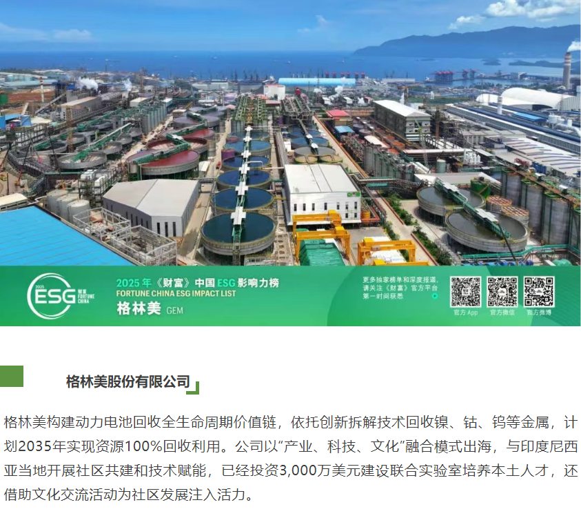 圖一 格林美入選2025年《財富》中國ESG影響力榜