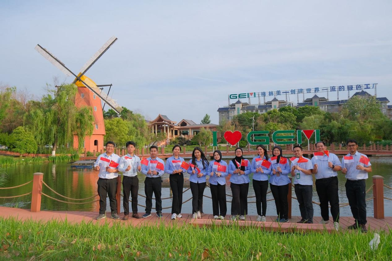 圖六 “印尼政府-格林美-中南大學”聯合培養工程碩士與博士國際班學生在格林美荊門園區合影