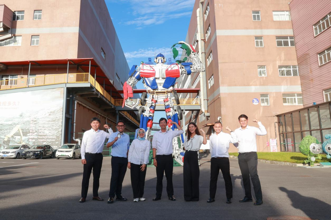 ▲ 印尼副總統辦公室嘉賓于格林美武漢園區“綠色大力士”前合影,與格林美一同“肩扛”綠色地球