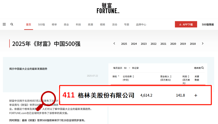 2025年7月22日,《財富》雜志正式發布2025年中國500強排行榜。格林美(股票代碼:002340)以2024年全年營收332億元的卓越業績再度入圍,位列第411位,排名較上年大幅提升43位,彰顯持續增長勢能。 ▲ 格林美...