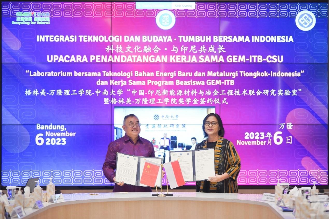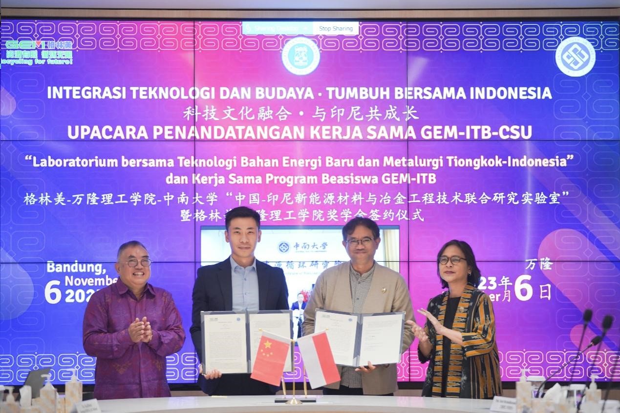 格林美與萬隆理工學院簽署《格林美—萬隆理工學院獎學金捐贈協議》。(萬隆理工學院供圖 )