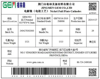 一、同意荊門市格林美新材料有限公司生產“GEM格林美”牌電解鎳(電積工藝,Ni99.96)在我所注冊,注冊產能3萬噸,執行標準價。