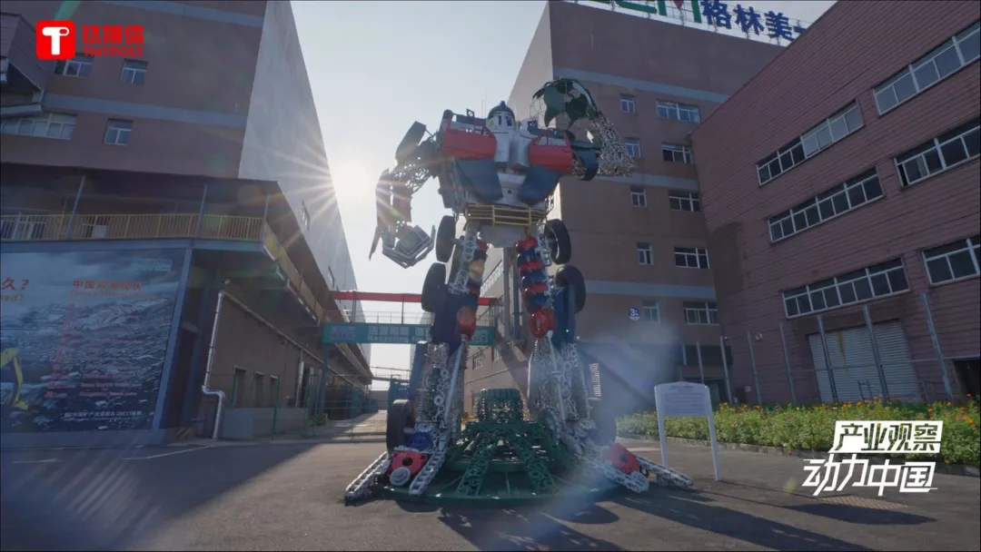 武漢,格林美廠區(qū)內(nèi)部,由報廢汽車零件建成的機器人裝置