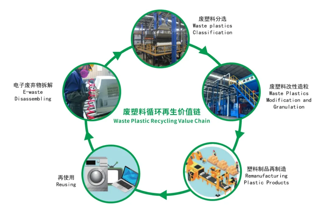 江西格林循環(huán)產(chǎn)業(yè)股份有限公司(簡稱:格林循環(huán)或公司)成立于2010年5月,是著名循環(huán)經(jīng)濟產(chǎn)業(yè)集團格林美集團(股票代碼002340)控股的以塑料再生改性為主的高新技術(shù)企業(yè)。歷經(jīng)十余年發(fā)展,目前已經(jīng)形成了“電子廢棄物拆解-廢塑料再生改性-廢電路板稀貴金屬回收”的綠色循環(huán)綜合利用產(chǎn)業(yè)鏈,同時聚焦解決廢塑料資源開發(fā)和高性能改性再生塑料應用的難題,成功開創(chuàng)了“廢舊產(chǎn)品-回收拆解-資源化-改性再造-新產(chǎn)品”的廢塑料全產(chǎn)業(yè)鏈循環(huán)經(jīng)濟模式,產(chǎn)品進入世界級品牌供應商,成為中國領(lǐng)先的高品質(zhì)再生塑料供應商。
