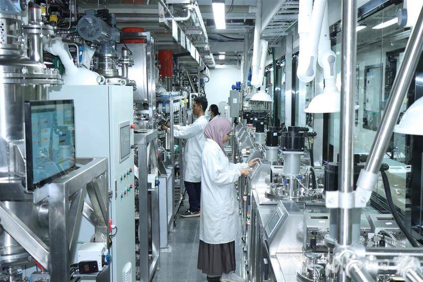 研究人員在印度尼西亞萬隆理工學(xué)院中國-印尼新能源材料與冶金工程技術(shù)聯(lián)合研究實驗室工作