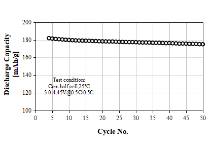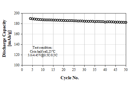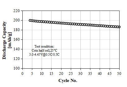 L-6003D產(chǎn)品特點:單晶或類單晶形貌,高電壓,高容量