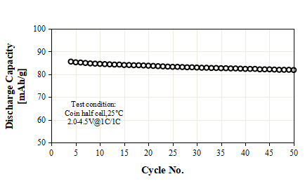 NF-S1產(chǎn)品應(yīng)用:用于方型或軟包電池,扣電4.50V下0.1C放電91.50mAh/g,循環(huán)性能:1C/1C,50周≥90%,可用于二輪車及儲(chǔ)能。