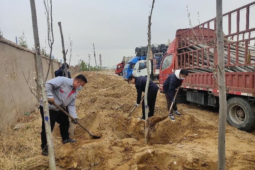 植一抹新綠,播撒一片春光。在格林循環內蒙古園區,大家擼起袖子、揮鍬翻土,小心翼翼地將一棵棵樹苗植入剛挖好的樹坑內,隨后培土填埋,以實際行動助力當地生態保護和高質量發展。
