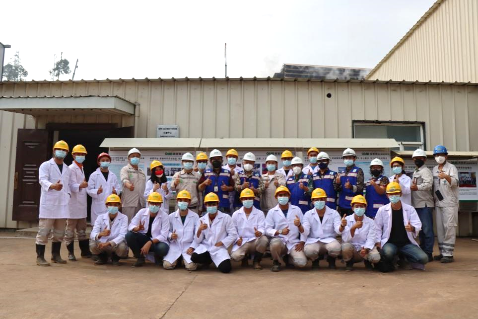 Satryo教授一行首先前往項目現場參觀考察,重點考察了青美邦實驗中心。焦華總經理簡要介紹了青美邦印尼鎳資源項目基本情況,許鵬云博士等詳細介紹了青美邦實驗中心的紅土鎳礦濕法冶煉中試線以及設施齊全的小試實驗室。Satryo教授饒有興致地詢問核心關鍵設備的相關技術問題,得知項目全部采用格林美自主知識產權的工藝方案時,贊不絕口,并對實驗室具備的濕法選冶實驗能力和項目全體成員在疫情中加緊施工趕進度的奮斗精神表示贊許。