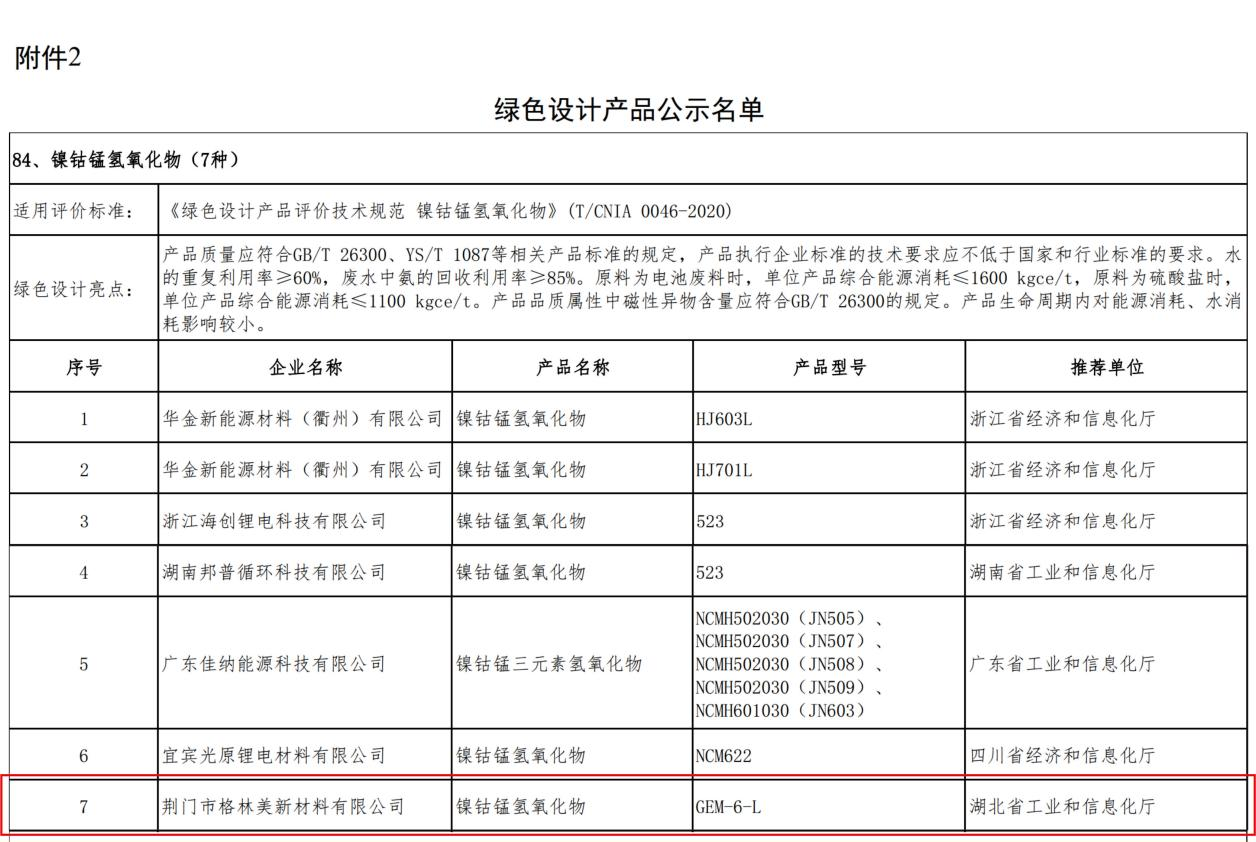 查看詳細2023年2月9日,國家工信部發布了關于“2022年度綠色制造名單公示”的通知,荊門市格林美新材料有限公司鎳鈷錳氫氧化物GEM-6-L成功入選“2022年度綠色設計產品”,武漢動力電池再生技術有限公司入選“2022年度綠色供應鏈管理企業”。