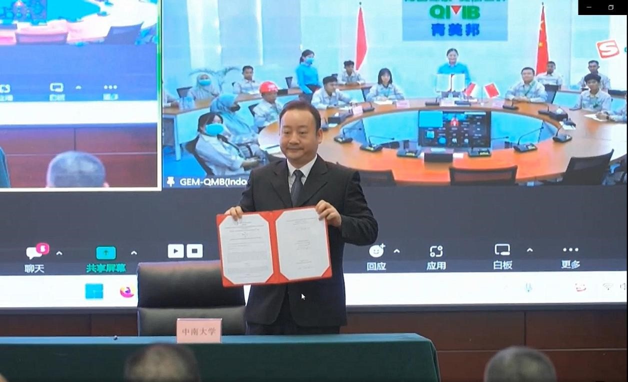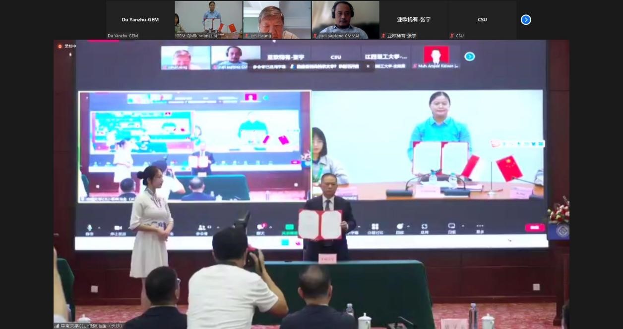 圖4 格林美、中南大學、印尼海統部三方簽署“關于合作培養印度尼西亞籍國際學生的協議”