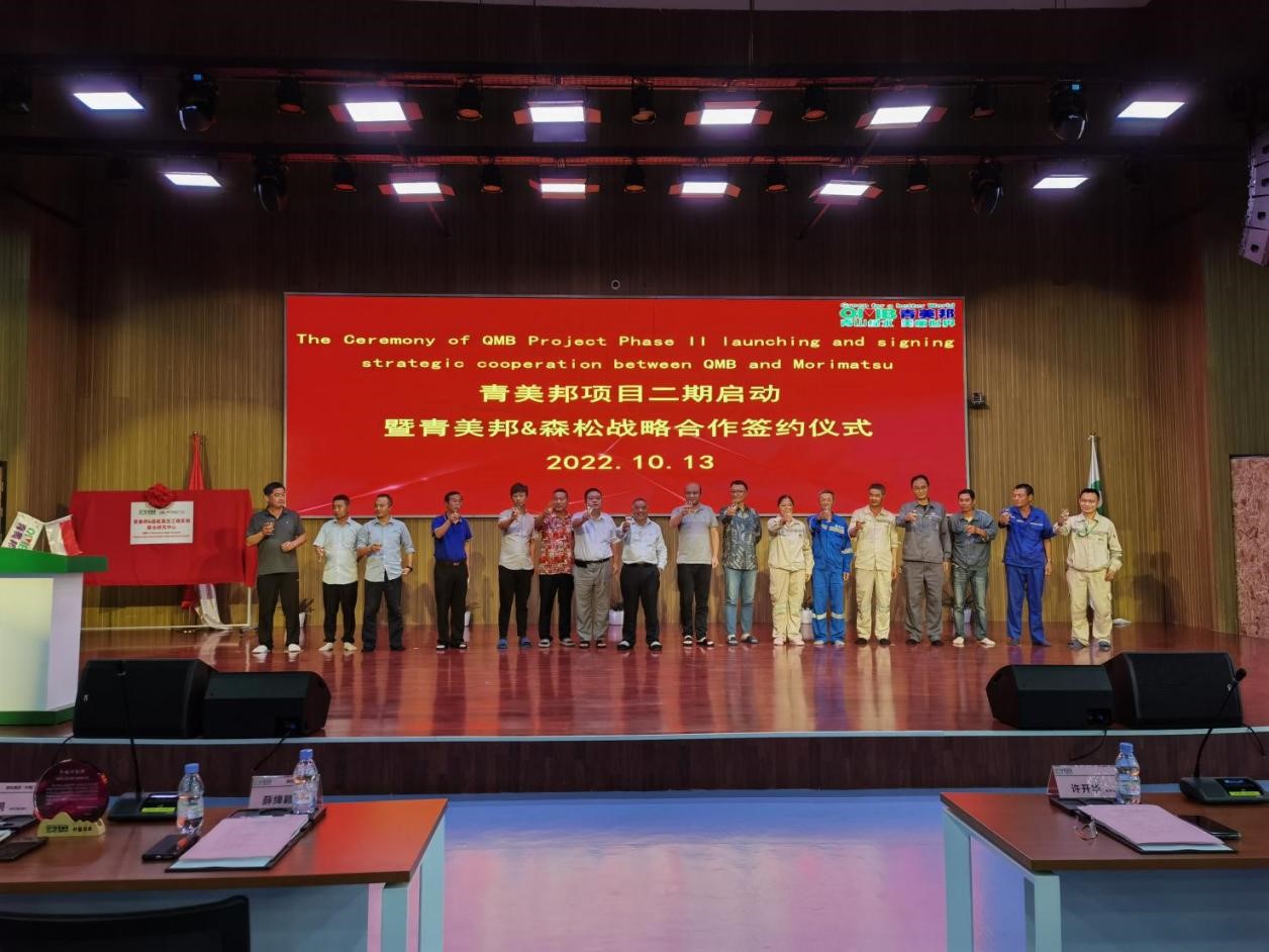森松集團技術總監司鵬,印尼服務中心負責人周軍軍,售后工程師代克偉、王學軍,格林美集團監事會主席魯習金,青美邦部分管理人員,以及青美邦合作伙伴等出席見證此次簽約儀式。