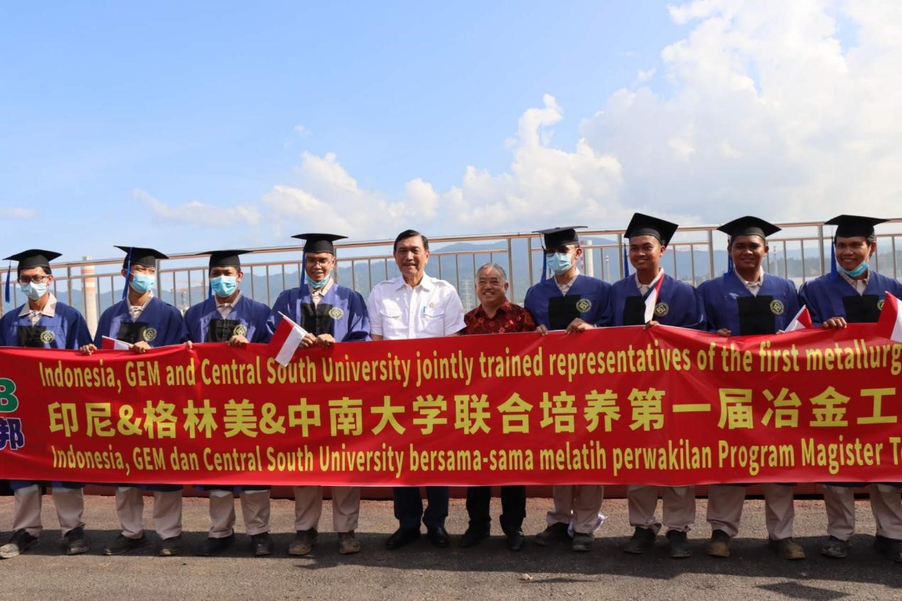 盧胡特部長與許開華教授共同種下了一棵“碳中和樹”,表達(dá)走向綠色未來的愿景。盧胡特部長還接見了“印尼—格林美—中南大學(xué)”聯(lián)合培養(yǎng)第一屆冶金技術(shù)工程碩士班畢業(yè)生,鼓勵(lì)他們?yōu)橛∧釃医üαI(yè)。