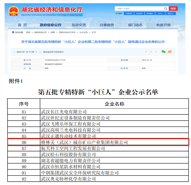 ▲ 城礦集團入選湖北省第五批專精特新“小巨人”企業