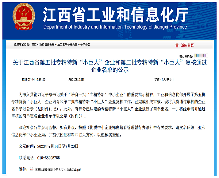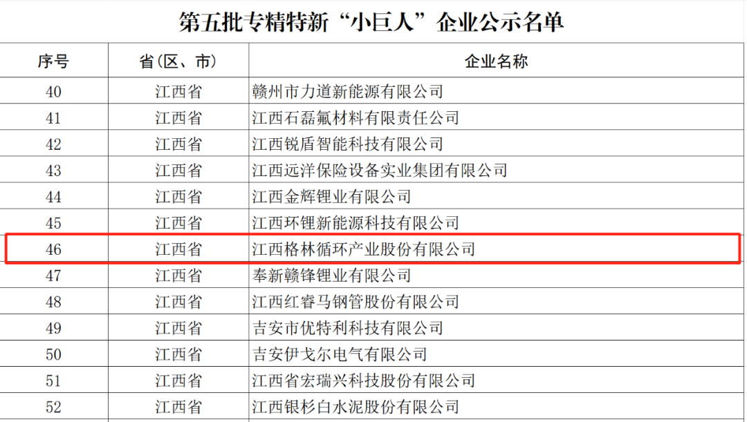 ▲ 格林循環入選江西省第五批專精特新“小巨人”企業